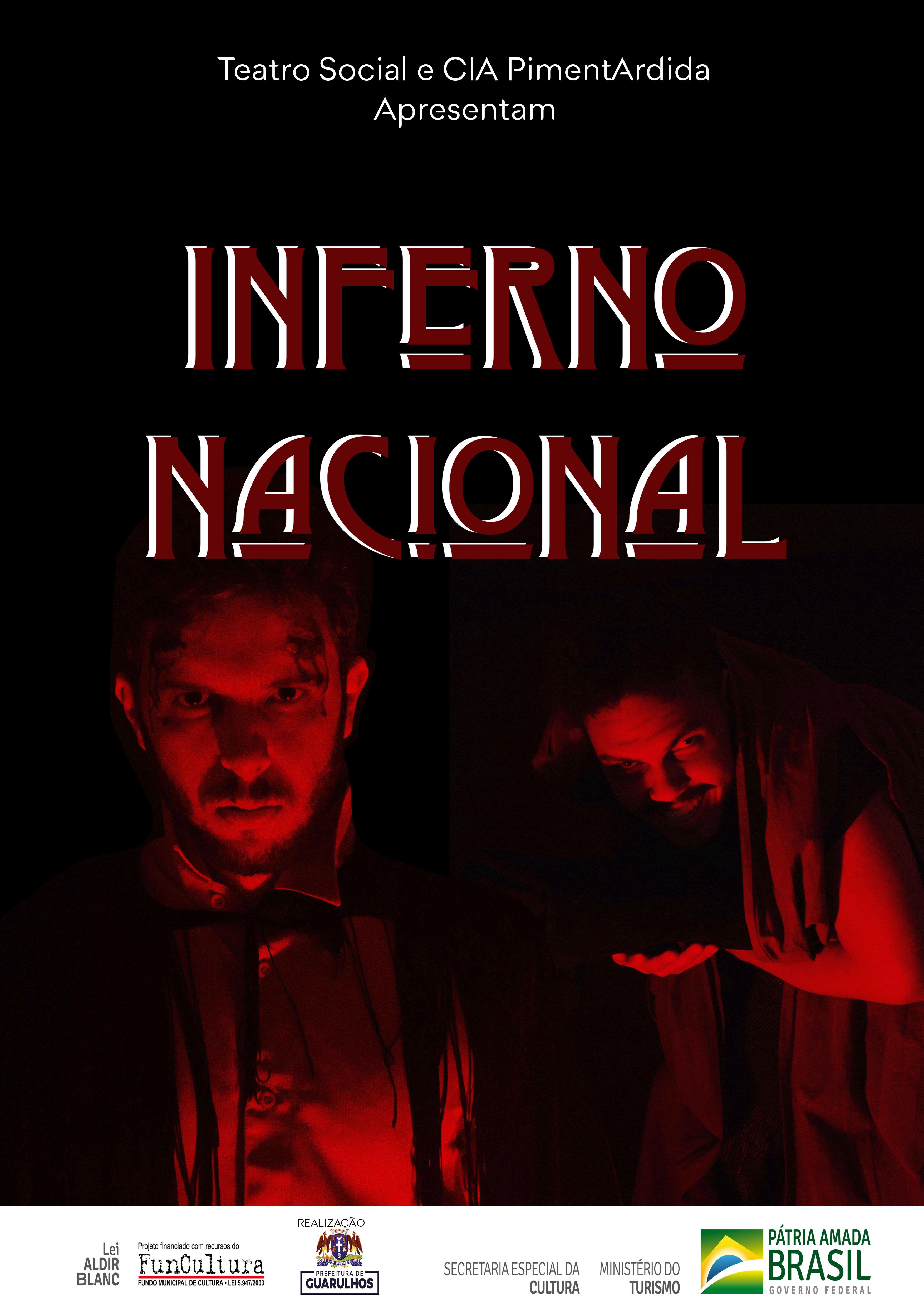 Inferno Nacional (Classificação: 11 anos) – Um adolescente está em um ambiente desconhecido e hostil, conhecido como inferno. Por não concordar com sua permanência nesse local ele começa a causar conflitos por questionar as regras. Para sair ele precisa vencer o diabo em um programa de televisão no estilo talk show. A alienação é o tema de reflexão da peça.