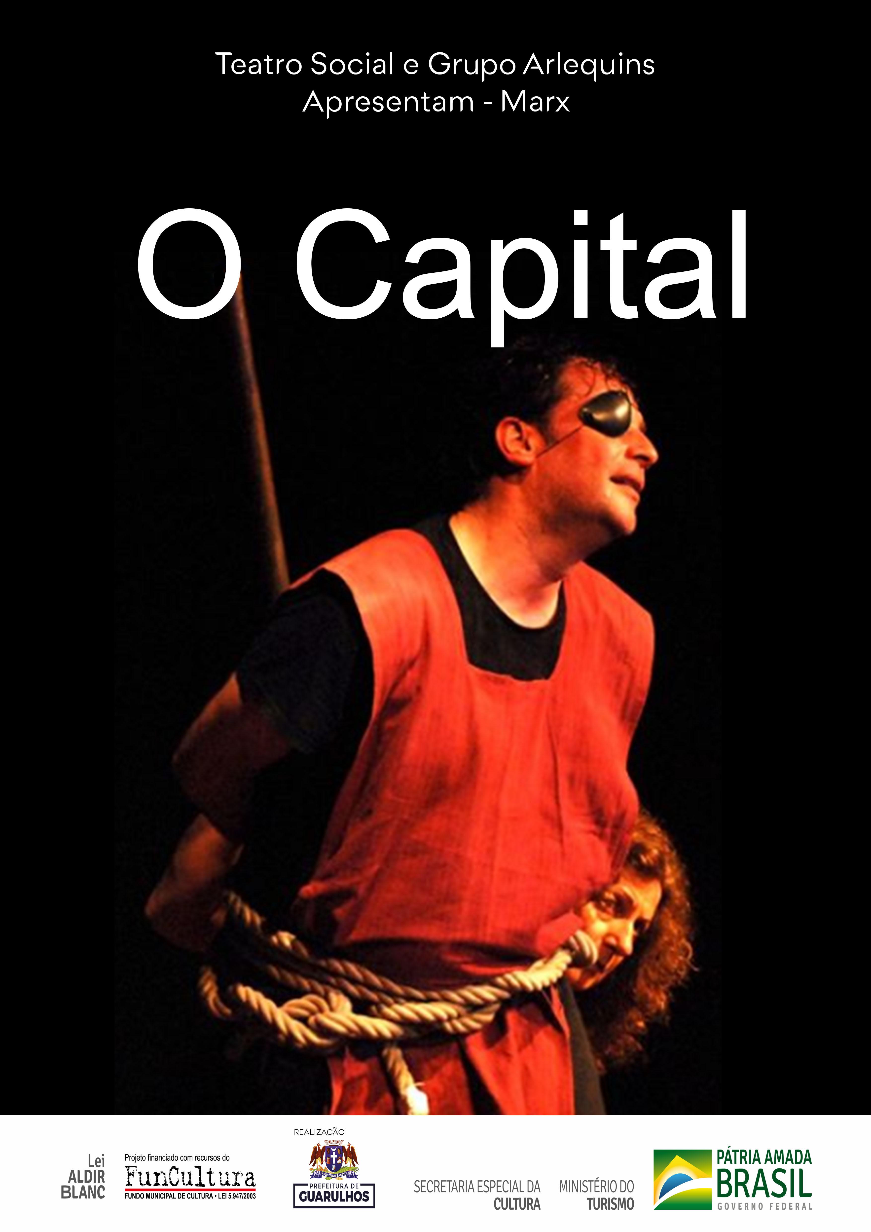 O Capital (Classificação: 11 anos) – Arlequins Apresenta Marx – A narradora Impostora lê trecho de livros, e o primeiro é Robinson Crusoé. Nele ela já começa a colocar a visão capitalista da troca de trabalho por mercadoria. Trechos de livros de Karl Marx são lidos e o conflito capital x mão de obra é escancarado em cada cena. A exploração de pessoas por seu semelhante é o debate proposto pela montagem épica.