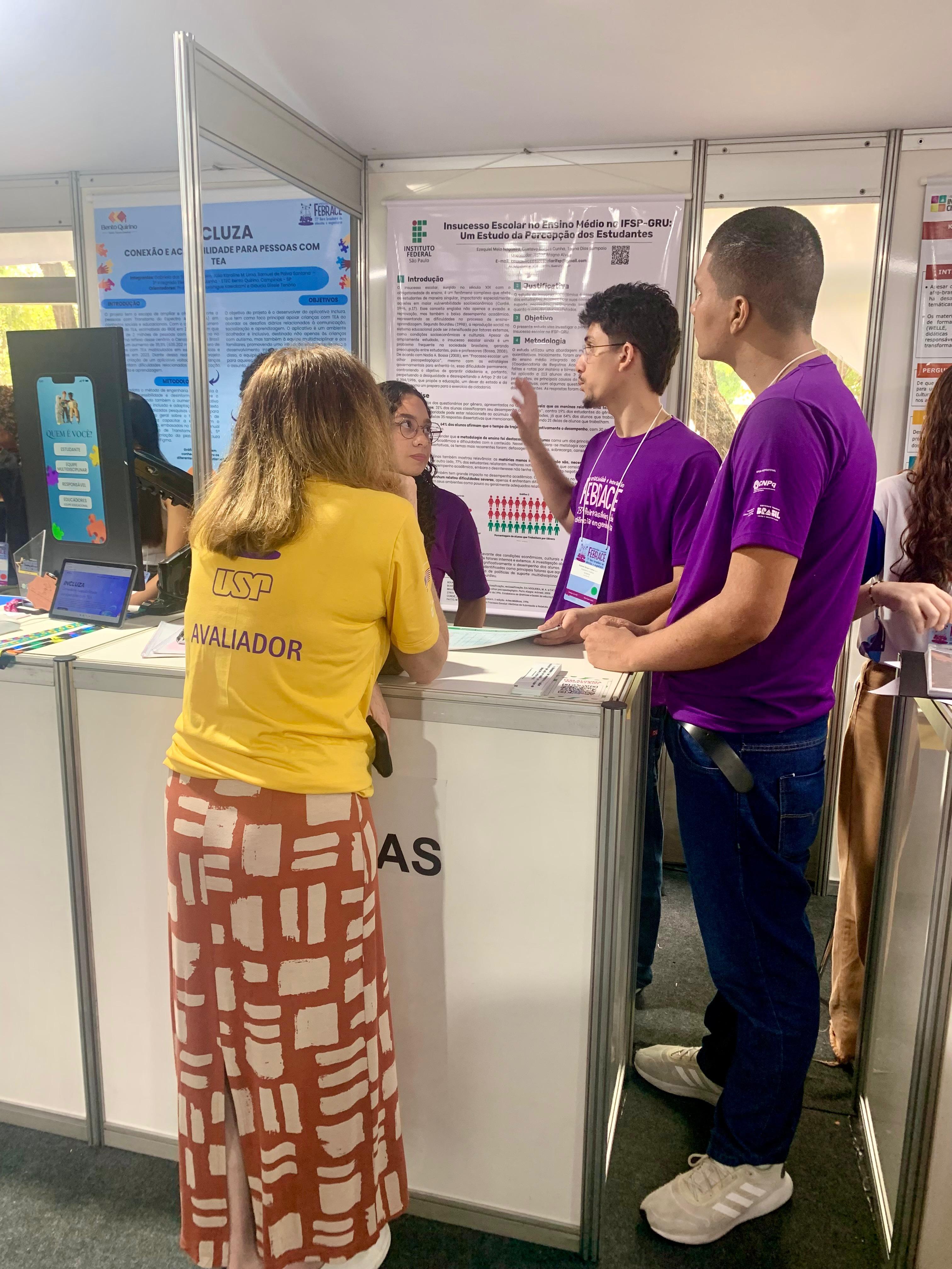 A aluna Tayna, do IFSP Campus Guarulhos, destacou a importância do evento no sentido de compartilhar conhecimento: “O mais interessante aqui na FEBRACE é a oportunidade de aprofundar nosso conhecimento na nossa área com os avaliadores e acabamos descobrindo e aprendendo com projetos de diversos outros lugares que estão por aqui. É muito legal estar aqui e ter essa oportunidade".