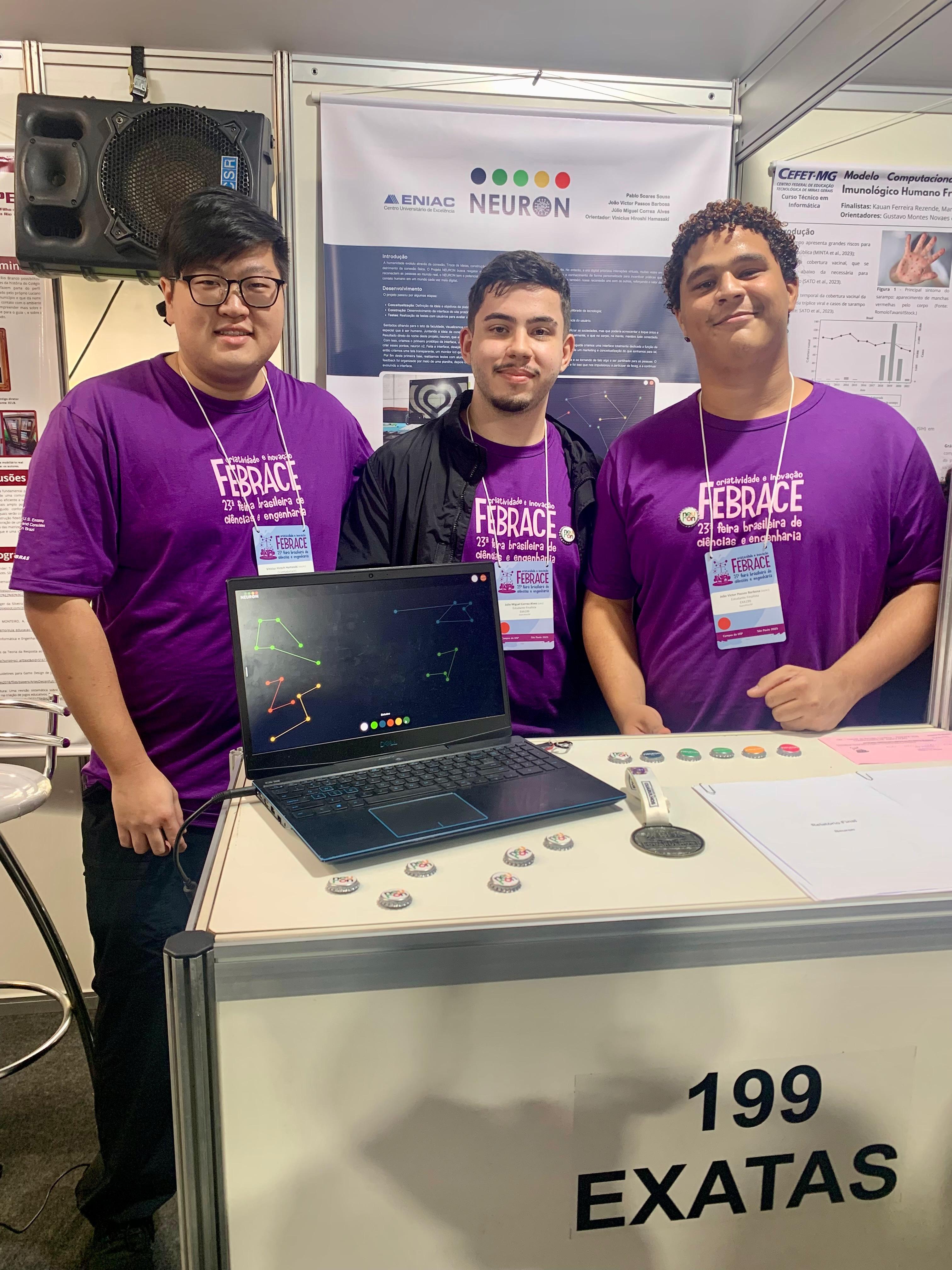 Os projetos Insucesso escolar no ensino médio no Instituto Federal de Educação, Ciência e Tecnologia de São Paulo - Campus Guarulhos: um estudo da percepção dos estudantes de autoria de Ezequiel Melo Nogueira, Tayna Dias Sampaio e Gustavo Borges Cunha do Instituto Federal de São Paulo Campus Guarulhos e o projeto Neuron - O futuro é a conexão de autoria de Pablo Soares Sousa, João Victor Passos Barbosa e Júlio Miguel Correa Alves do colégio Eniac apresentaram suas pesquisas de forma presencial entre os dias 24 e 28 de março, no espaço do Inova USP.