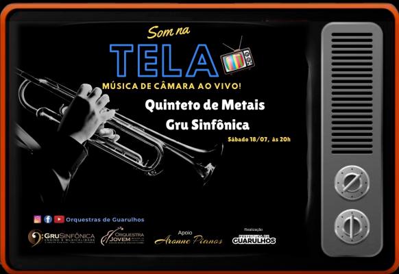 Neste sábado (18), às 20h, o Som na Tela apresenta espetáculo de música de câmara com o Quinteto de Metais da Orquestra Gru Sinfônica. Iniciativa da Prefeitura de Guarulhos, por meio da Secretaria de Cultura, o Som na Tela é apresentado por músicos das orquestras da cidade e convidados. Os espetáculos ao vivo são transmitidos pelas redes sociais das orquestras no YouTube (www.youtube.com/channel/UCS9r_T3pJEr2wnZreRGSo1g), no Facebook (www.facebook.com/ojmguarulhos/) e no Instagram (www.instagram.com/orquestra.em.casa/).