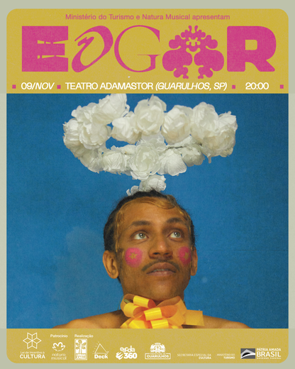 No palco, Edgar é acompanhado por Sthe Araújo (bateria e percussão) e Pancho Trackman (MPC e Groove box), que tocam as faixas do disco lançado em 2021.
