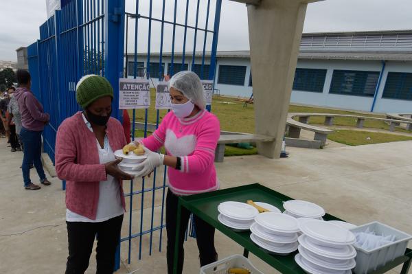 O programa Restaurante do Bem, iniciativa da Prefeitura de Guarulhos, iniciou nesta quarta-feira (15) a distribuição de duas mil refeições gratuitas em oito pontos estratégicos do município às pessoas em vulnerabilidade social durante o inverno e o período de pandemia. As refeições (mil almoços e mil sopas servidas no final da tarde) são preparadas com insumos doados por supermercados e empresas em creches conveniadas à Secretaria de Educação, que as distribui.