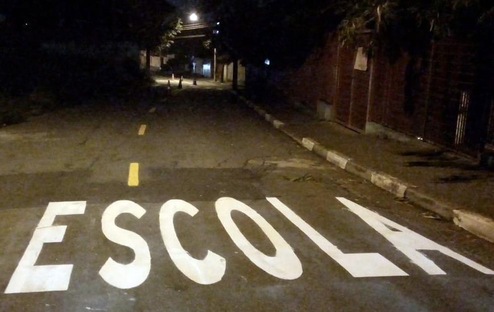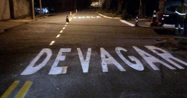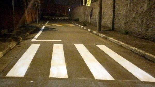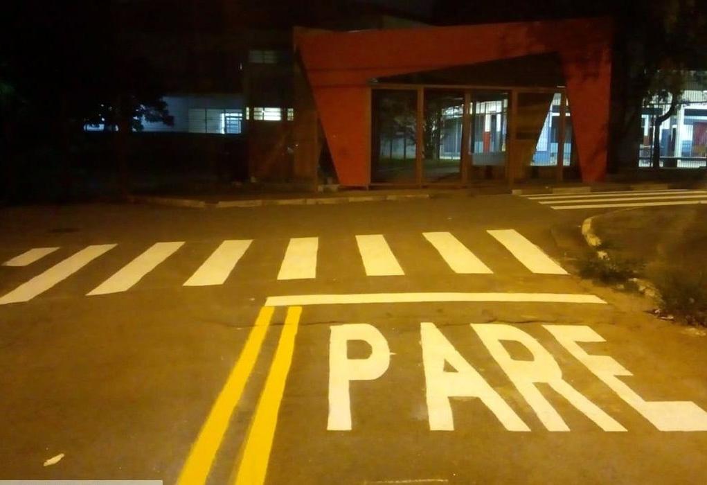 O trabalho foi dedicado à sinalização viária de solo, com a pintura de faixa de pedestres, indicativos de Devagar, Pare e Escola, além de faixa dupla contínua.