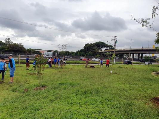Coordenado pela Divisão de Arborização da Secretaria de Meio Ambiente (Sema), o plantio contou com a participação de 30 voluntários do Rotary. Antes de começarem a acomodar as mudas de aroeira, pau-brasil e resedá, dentre outras espécies, nos berços previamente abertos, o grupo aprendeu um pouco mais sobre os benefícios que a arborização proporciona à vida nas cidades, como diminuição da temperatura ambiente, redução de alagamentos, beleza e presença de pássaros.