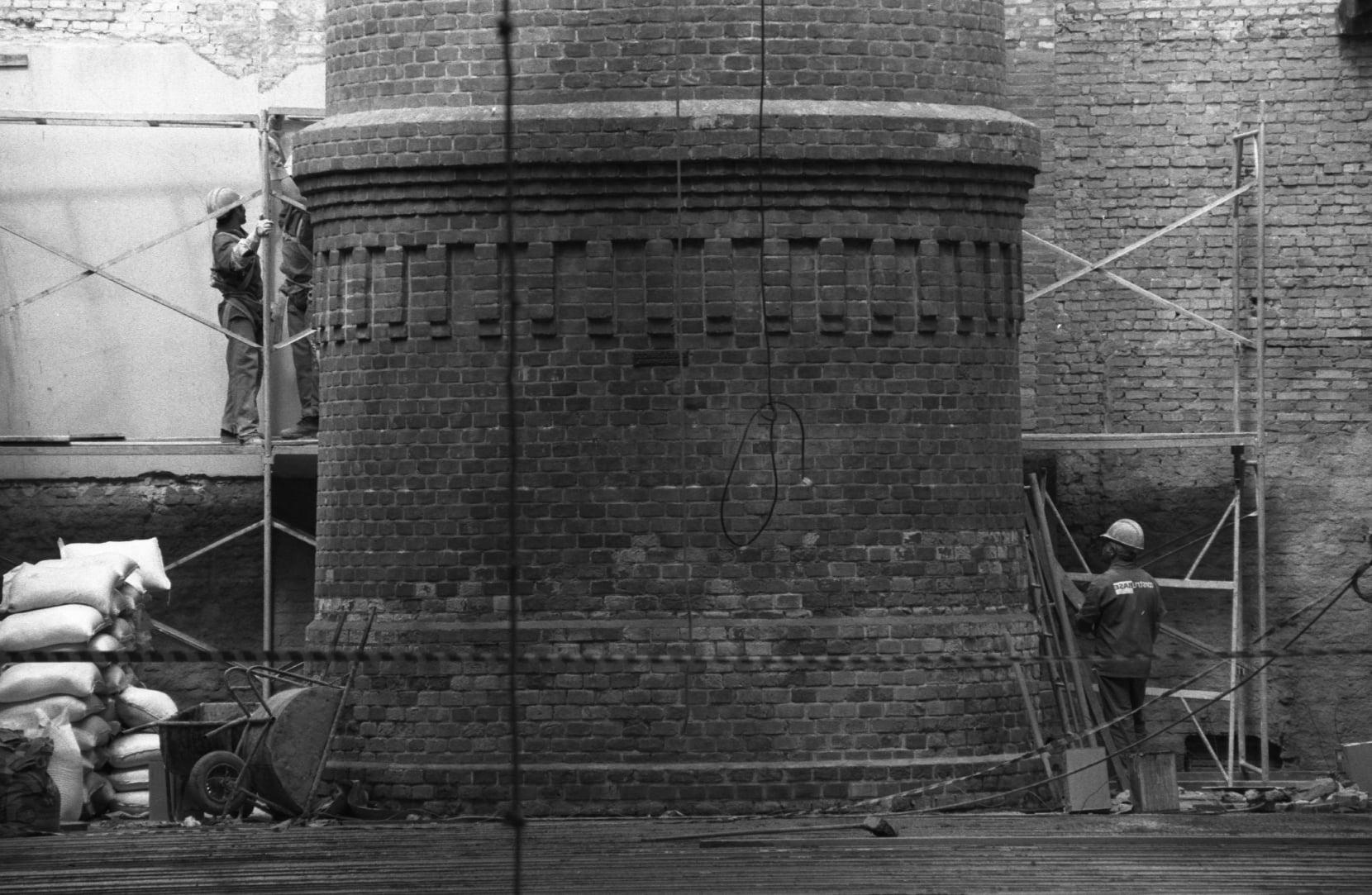 As fotos do complexo do Adamastor nos tempos de sua restauração revelam ainda os cuidados dos trabalhadores com a chaminé herdada da antiga olaria, a reforma do telhado, a construção do prédio que hoje abriga a Secretaria do Trabalho, o pátio externo, entre outras áreas.