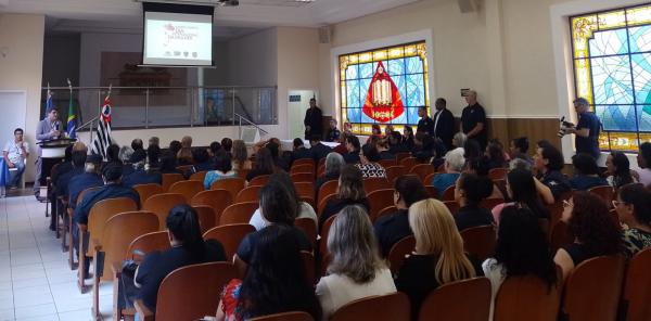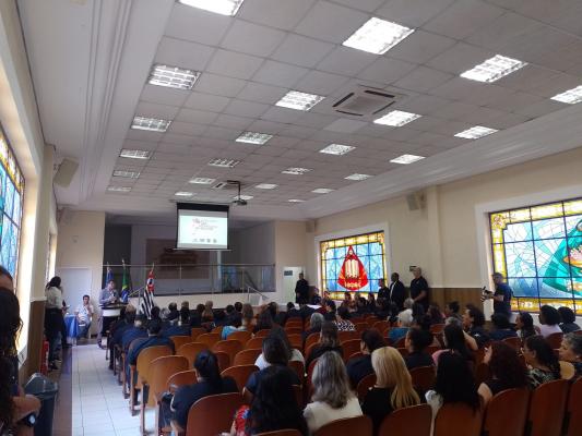 Na manhã desta terça-feira (14) a Secretaria para Assuntos de Segurança Pública (SASP) de Guarulhos realizou um evento alusivo ao Dia Internacional da Mulher no salão anexo da Igreja Universal na avenida Paulo Faccini, uma parceria da Prefeitura com o projeto Universal nas Forças Policiais.