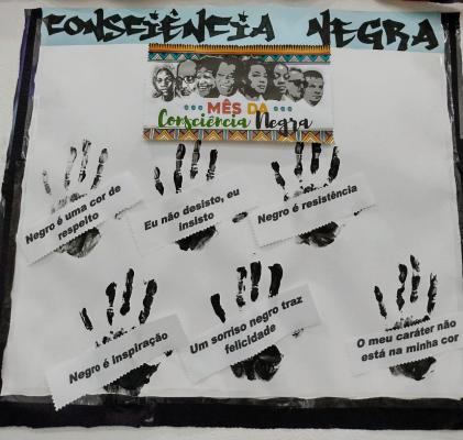 Foram apresentados vídeos explicativos sobre o contexto da escravatura, imagens e dados que expõem a desigualdade racial no Brasil.