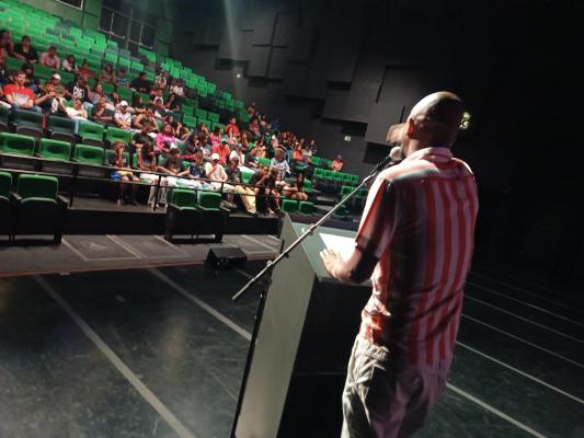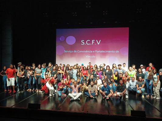 Cerca de 70 adolescentes assistidos pelo Serviço de Convivência e Fortalecimento de Vínculos (SCFV) da Prefeitura de Guarulhos participaram de atividades artísticas, como apresentações poéticas, teatrais, musical e de dança nesta quinta-feira (16) no Sesc Guarulhos, localizado no Jardim Flor do Campo.