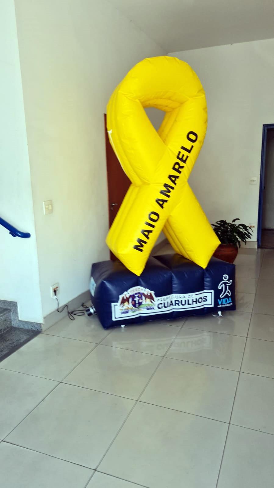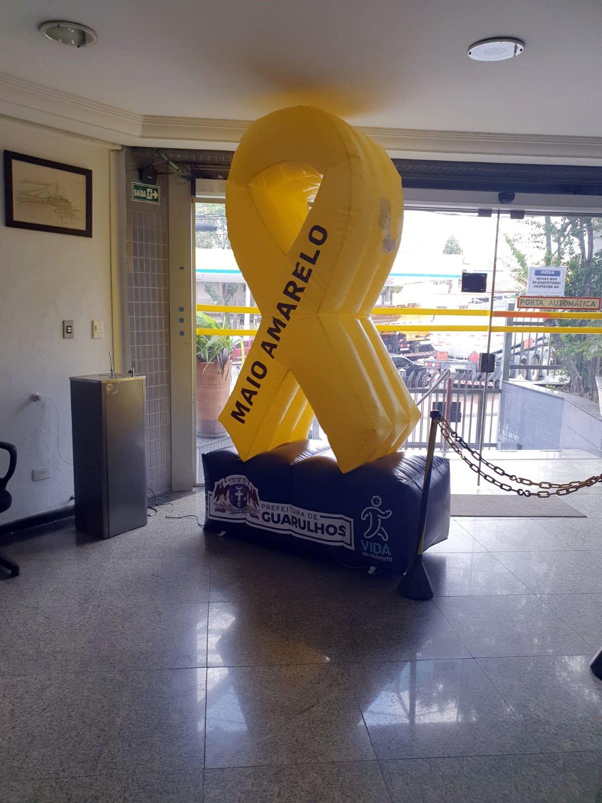 Grandes laços infláveis, símbolo do movimento Maio Amarelo - Juntos Salvamos Vidas, foram instalados nesta sexta-feira (20) na entrada das secretarias da Saúde, de Educação, para Assuntos de Segurança Pública e de Transportes e Mobilidade Urbana (administração e operacional) e também das unidades Fácil Transportes e Jardim Bom Clima.