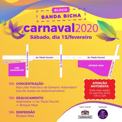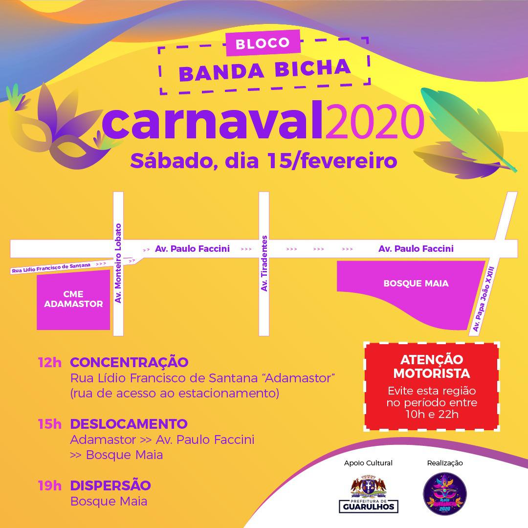 Para evitar transtornos para as pessoas que não irão participar do tradicional bloco de carnaval da Banda Bicha, que acontece neste sábado (15), a Prefeitura de Guarulhos, através da Secretaria de Transportes e Mobilidade Urbana (STMU), irá implantar um esquema especial de trânsito para a região.