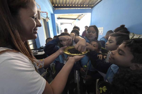 O Pátio Escola de Compostagem e Agricultura Urbana, no Taboão, recebeu nesta terça-feira (6) cerca de 120 alunos da EPG Professora Dalva Marina Ronchi Mingossi, que participaram do primeiro dia de atividades da Semana da Compostagem 2025.