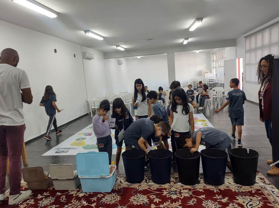 Alunos do ensino fundamental do Colégio Parthenon - Unidade Vila Augusta, participaram nesta quinta-feira (13) de uma atividade lúdica sobre sustentabilidade com foco na importância da separação e da destinação correta dos resíduos sólidos gerados na escola e também em casa.