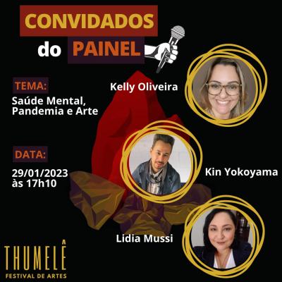 No domingo, dia 29, às 17h10, a psicóloga Kelly Oliveira, o palhaço e psicanalista Kin Yokoyama e a psicoterapeuta Lidia Mussi comandam o painel com o tema Saúde Mental, Pandemia e Arte. Além dos debates temáticos, os convidados irão responder perguntas feitas pelo público.