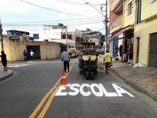 Nesse endereço, as equipes da Secretaria de Transportes e Mobilidade Urbana (STMU) realizaram a implantação de vaga para perua escolar, seguida da faixa dupla amarela contínua, além da sinalização horizontal, que visa proporcionar mais segurança aos pedestres. Também foi realizado todo trabalho de sinalização vertical com colocação das placas indicativas de velocidade (máxima de 30 km/h), travessia de escolares e transportes escolar na linha branca.