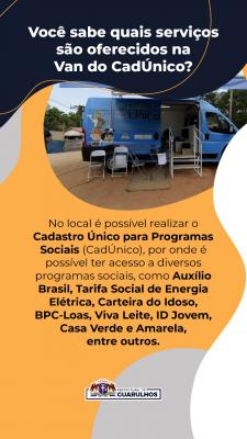 A população poderá fazer ou atualizar o Cadastro Único para Programas Sociais (CadÚnico), por meio do qual é possível ter acesso a benefícios como Auxílio Brasil, Tarifa Social de Energia Elétrica, Carteira do Idoso, BPC-Loas, Viva Leite, ID Jovem, Casa Verde e Amarela, entre outros.