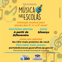 A partir da próxima segunda-feira (21) a Prefeitura de Guarulhos abre inscrições para o Programa Música nas Escolas, iniciati