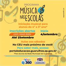 A Prefeitura de Guarulhos prorrogou até o dia 1º de setembro as inscrições para o programa Músi