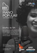 Com repertório popular regado a Djavan, Chorão e Vinícius de Moraes, a pianista guarulhense Dedé Brasil se apresenta nesta quinta-feira, dia 6, às 10h, na praça da Biblioteca Monteiro Lobato.