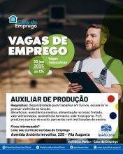 Na próxima quarta-feira (29), às 13h, a Casa do Emprego da Vila Augusta (antiga Ameg) realizará seleção para 60 vagas de auxiliar de produção abertas pela empresa Panco.