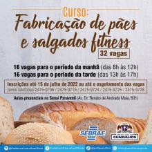Os interessados em aprender a fabricação de pães e salgados fitness podem se inscrever no curso disponibilizado gratuitamente pela Prefeitura de Guarulhos até o próximo dia 15 de julho.
