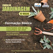 A Prefeitura de Guarulhos receberá até a próxima segunda-feira (22) as inscrições para o curso de formação básica em jardinagem.