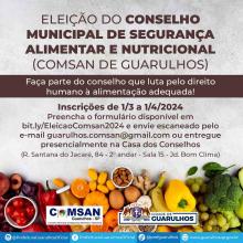Entre 1º de março e 1º de abril estarão abertas as inscrições para a eleição do Conselho Municipal de Segurança Alimentar e Nutricional (Comsan) de Guarulhos.