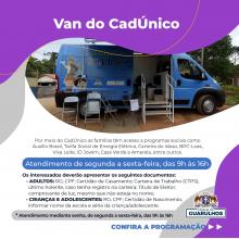 A Van do CadÚnico, equipamento móvel de assistência social da Prefeitura de Guarulhos, atenderá quatro bairros em março: Parque Seringueiras, Jardim Bela Vista, Jardim Santa Clara e Água Azul.