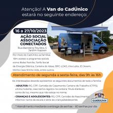 Para reforçar a atuação de programas sociais no Jardim Itapoan, a Van do CadÚnico leva ao bairro a ação social Associação Conectados, a partir desta segunda-feira (16) até o próximo dia 27.