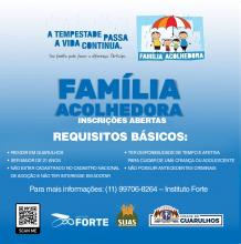 A Prefeitura de Guarulhos, em parceira com o Instituto Forte, busca candidatos em participar do programa Família Acolhedora, serviço que viabiliza o acolhimento de crianças e adolescentes afastadas