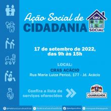 A próxima edição do GRU Social, ação de cidadania da Prefeitura de Guarulhos, acontecerá em 17 de setembro no Centro de Referência da Assistência Social (Cras) Acácio, que fica na rua Maria Luiza P