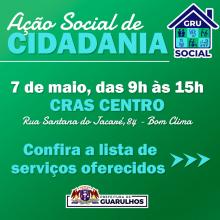A ação de cidadania GRU Social terá uma nova edição no dia 7 de maio, das 9h às 15h, no Cras Centro (rua Santana do Jacaré, 84, Jardim Bom Clima).