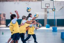 Cerca de 400 alunos da EPG Glorinha Pimentel, no Jardim Castanha, participam do projeto Viva Vôlei, ação que visa à inclusão social de crianças por meio da iniciação esportiva.