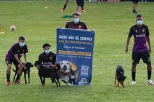 Os cachorros que estão à espera de adoção no Departamento de Proteção Animal (Dpan) foram uma atração à parte antes do clássico guarulhense pela Copa