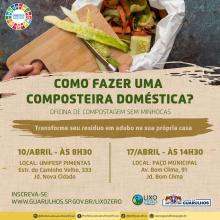 O programa Lixo Zero Guarulhos promove, nos dias 10 e 17 de abril, oficinas de compostagem doméstica para ensinar a transformar restos de alimentos em adubo orgânico, processo conhecido como compos