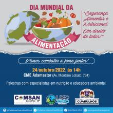 No próximo dia 24 de outubro (segunda-feira), às 14h, o Adamastor Centro (avenida Monteiro Lobato, 734, no Macedo) receberá um evento em celebração ao Dia Mundial da Alimentação, com o tema “Segura