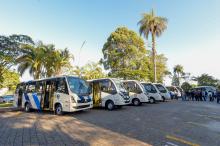 Em cerimônia realizada na manhã desta quinta-feira (26) no Paço Municipal, a Prefeitura de Guarulhos entregou 15 novos micro-ônibus, que nesta semana passam a integrar a frota do sistema de transpo