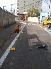 O trabalho de revitalização viária da cidade prosseguiu na madrugada desta quarta-feira (14) em ritmo acelerado com a conclusão da sinalização de mais seis vias em três bairros do município.