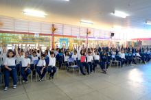 Na última sexta-feira (14), cerca de 200 alunos das turmas dos 5ºs anos da EPG Tom Jobim, no Cidade Seródio, receberam certificados de conclusão do curso de prevenção ao uso de drogas, ministrado p