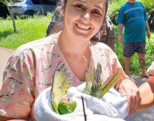 Agentes da Inspetoria Ambiental da Guarda Civil Municipal (GCM) de Guarulhos e do Corpo de Bombeiros Militar resgataram na tarde de sexta-feira (7) uma ave silvestre da espécie maritaca envolta em