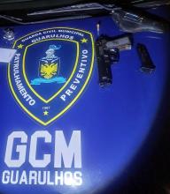 Agentes da Inspetoria Parques da Guarda Civil Municipal (GCM) de Guarulhos em serviço no posto Lago dos Patos, na Vila Galvão, localizaram por volta das 6h desta quinta-feira (6) um revólver calibr