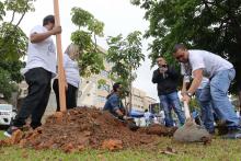 O canteiro central da avenida Bartholomeu de Carlos, no Picanço, ganhou 50 novas mudas de árvores nativas da Mata Atlântica no sábado (4)