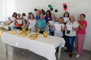 Entrega de certificados curso de Confeitaria para assistidas da Casa da Mulher Vl Galvão