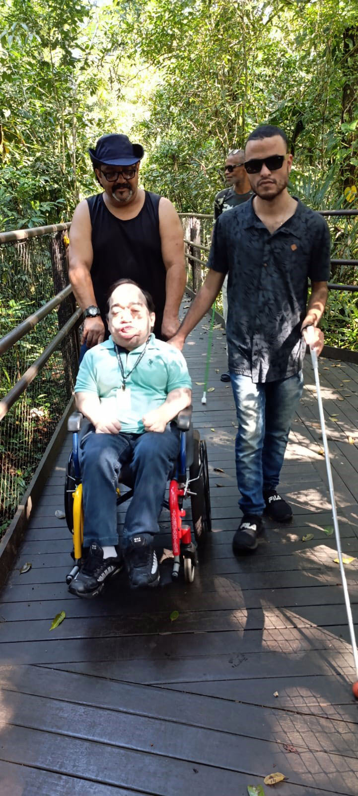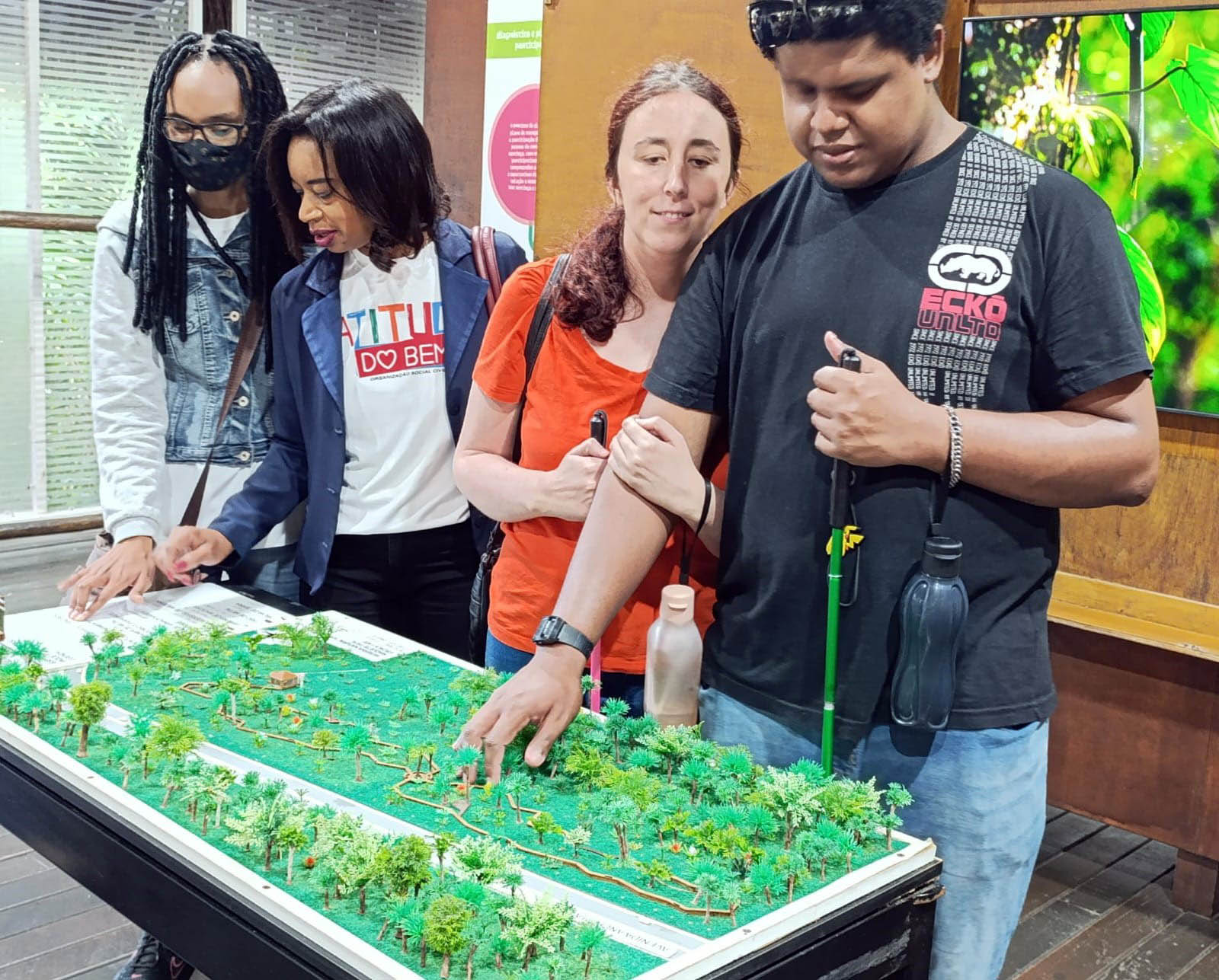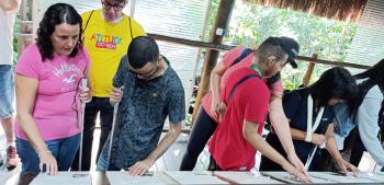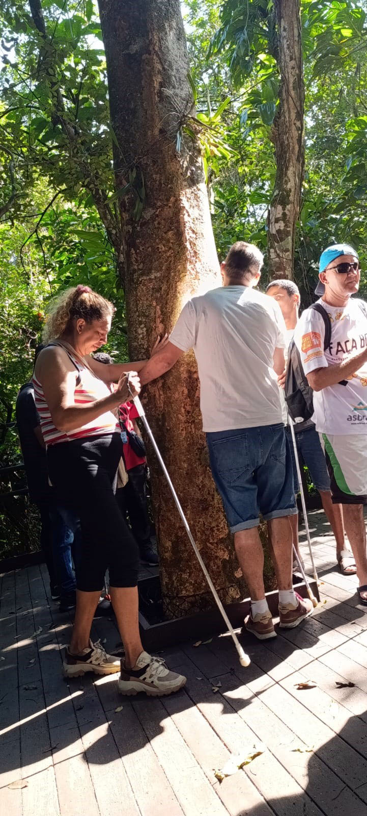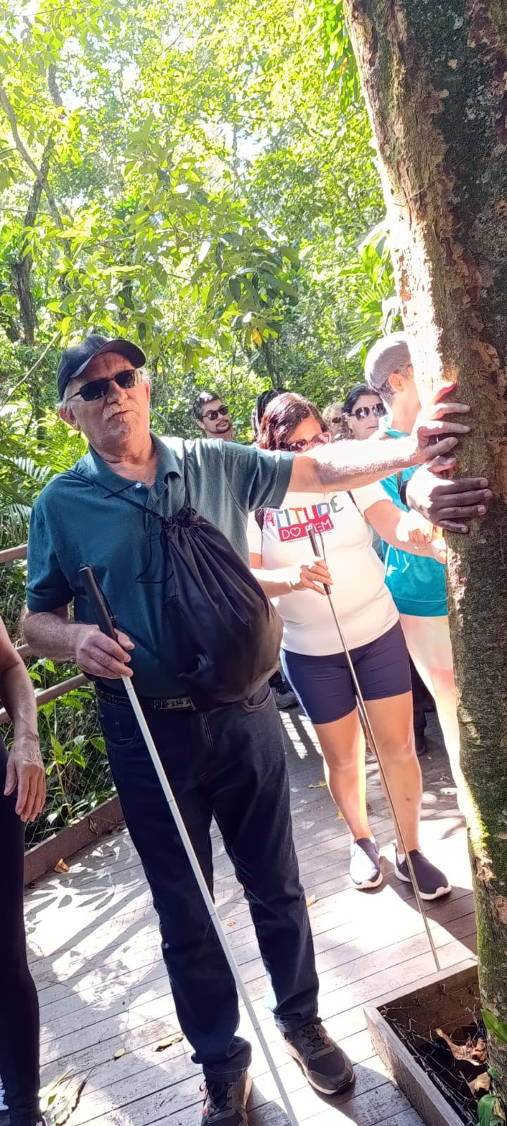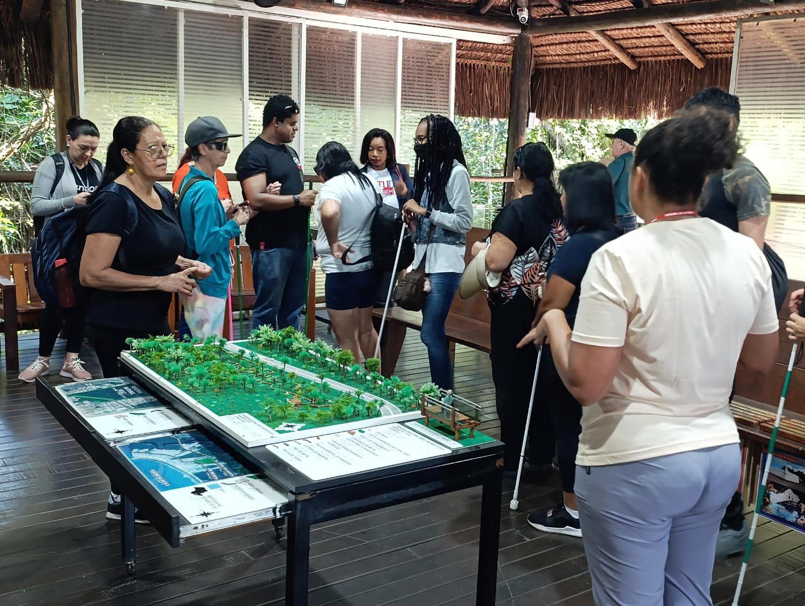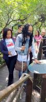 Pessoas com deficiência visual assistidas pela Prefeitura participam de trilha em Bertioga