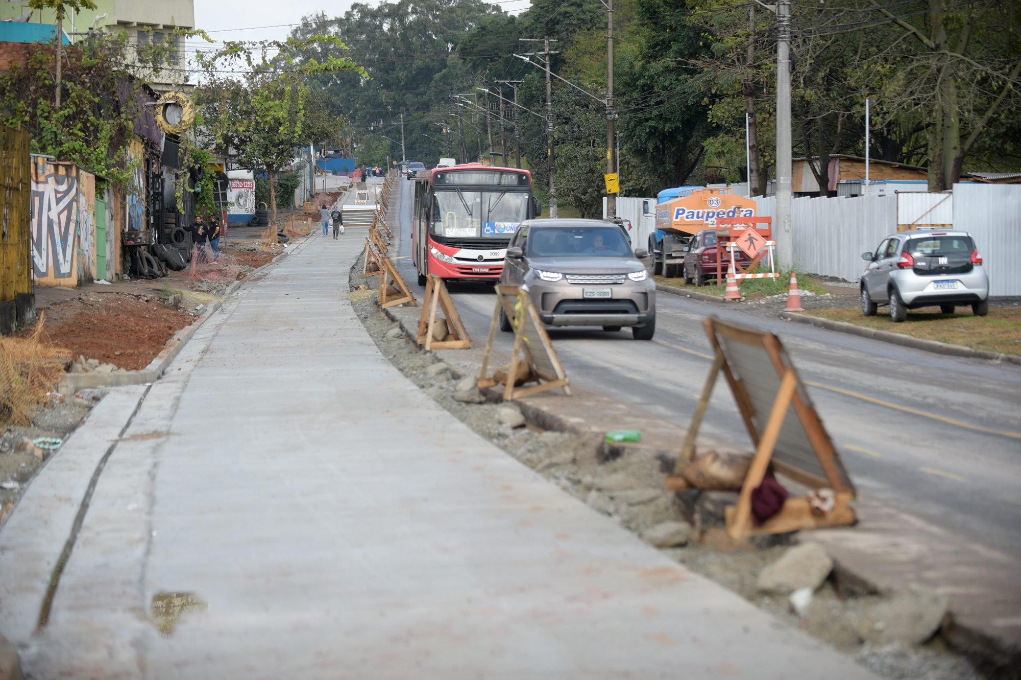 Obras do corredor de ônibus da avenida Papa João Paulo I - Cumbica