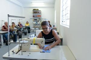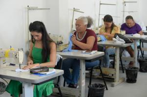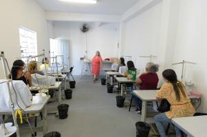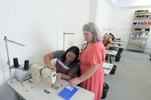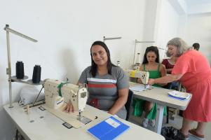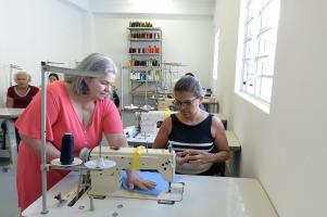 Início da turma de costura e conserto. Casa da Mulher Clara Maria - Vila Galvão