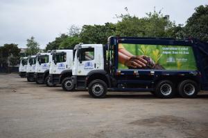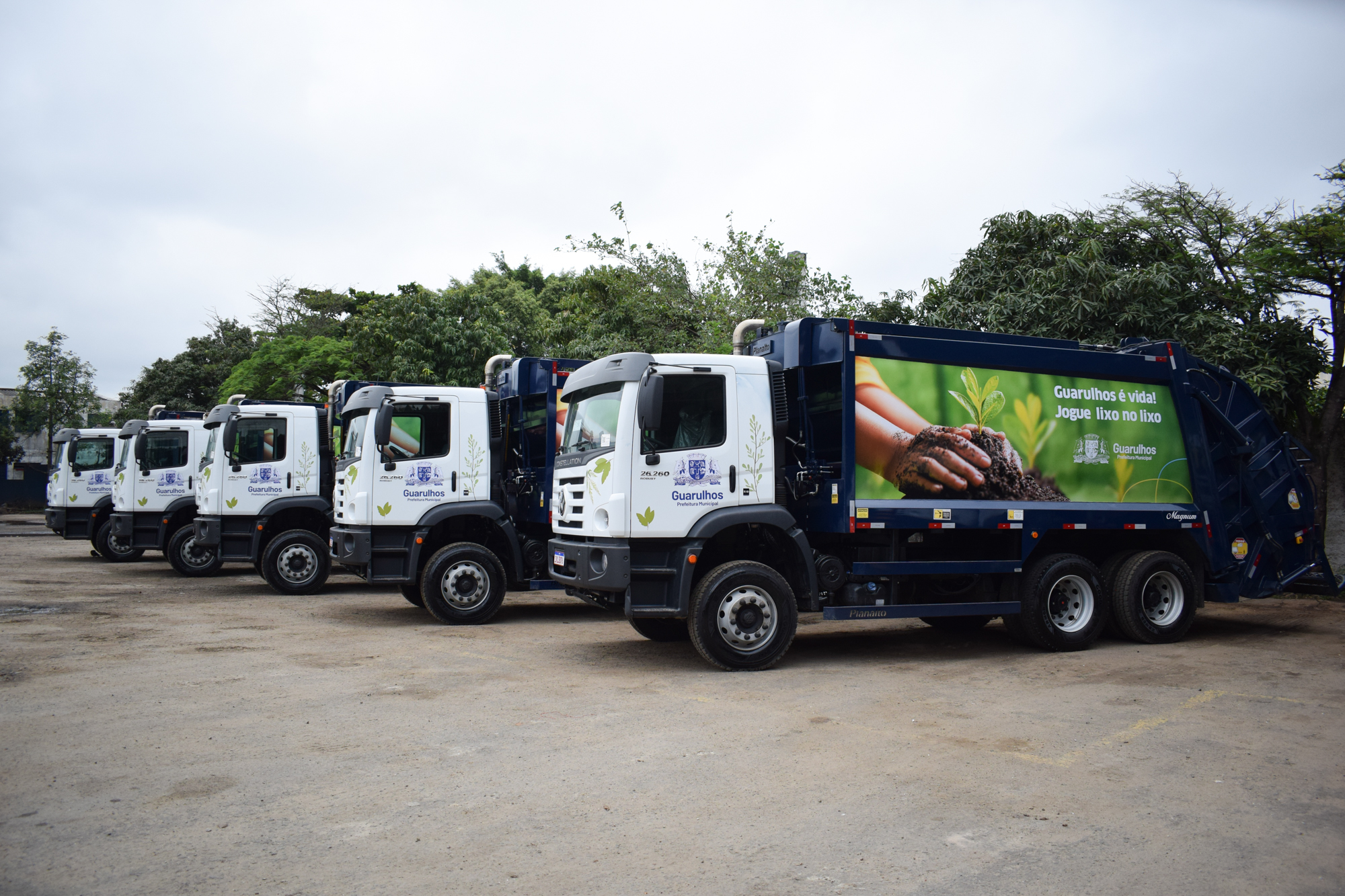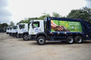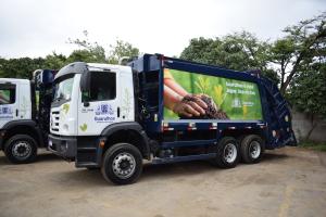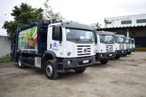 Entrega de caminhões de lixo