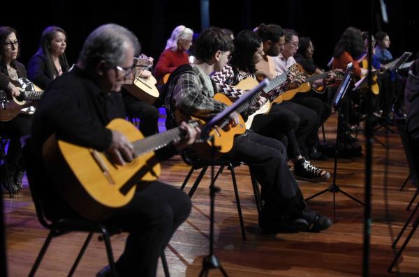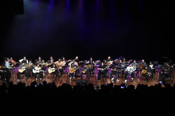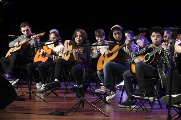 Trinta e um alunos do curso de violão do Conservatório Municipal de Guarulhos se apresentaram na noite de quinta-feira (30) no Teatro Adamastor. O grupo, denominado Clube do Violão, é formado por crianças, adultos e idosos estudantes da instituição e atraiu mais de 200 pessoas ao teatro.