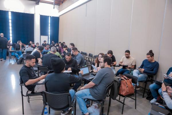 Os participantes se dividiram em grupos e discutiram propostas com o objetivo de construir um documento norteador, com apoio do material da grade curricular da rede municipal.