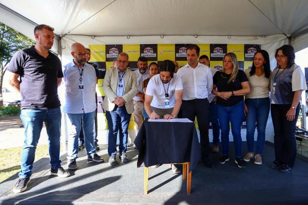 “Vamos continuar levando estrutura para as ruas dos bairros, mas hoje anunciamos também o recape da avenida Brigadeiro Faria Lima, uma importante via da cidade que diariamente recebe um trânsito intenso de veículos de transporte público e passeio por ligar o Jardim Bom Clima ao Jardim Adriana. Nessa força-tarefa que é o programa Novo Asfalto já recapeamos as avenidas Tiradentes e Salgado Filho e outras vias de grande tráfego”, ressaltou o prefeito Guti.